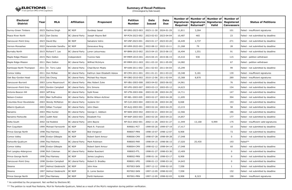 With all the chatter about recall now that floor-crossing has become de rigueur in Ottawa, the discussion seems centered around the fact Alberta introduced recall legislation in 2021. British Columbia has had it since 1995.